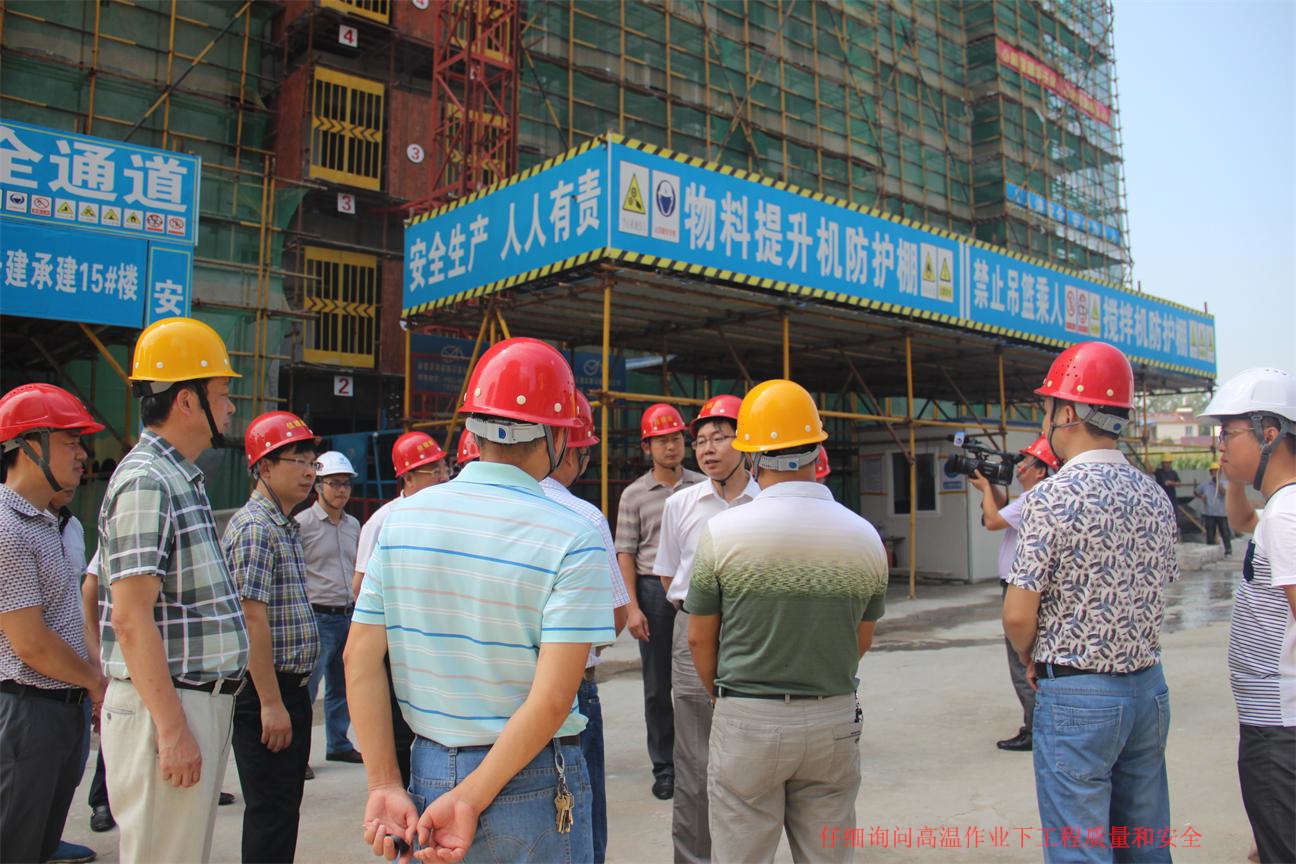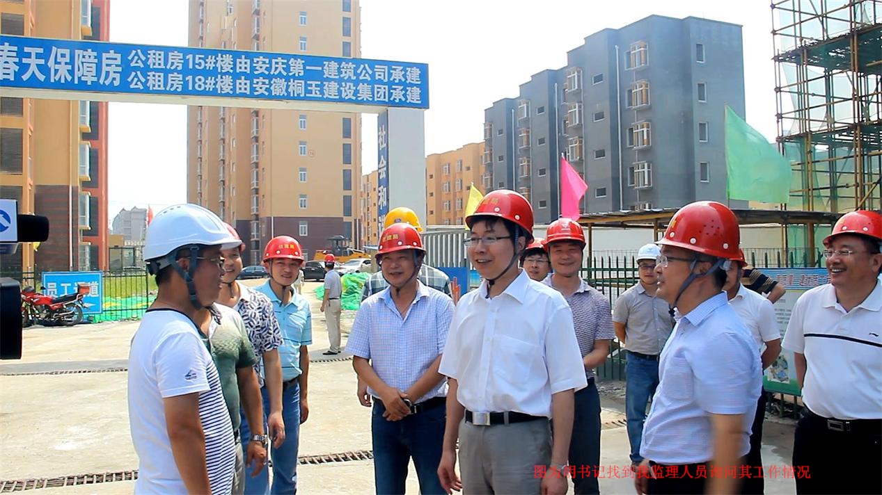 近段时间以来,我市天气炎热,气温居高不下。8月5日上午,安庆市委常委、桐城市委书记胡红兵,桐城市委常委、组织部部长徐金贵,市长助理刘登银一行在住建局局长徐彬等相关负责人的陪同下来到我公司监理的幸福春天保障房15#、18#楼工地现场进行送清凉慰问活动。