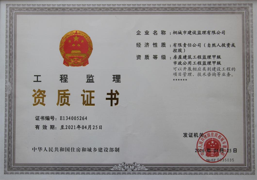 热烈祝贺华体会平台,华体会(中国)取得房屋建筑及市政公用工程监理甲级资质!这也是我公司继2013年取得人防工程监理丙级资质和2015年公司新大楼建成搬迁后又一里程碑事件。该资质证书的取得既肯定了我们前一阶段所取得的工作业绩,又为我公司的进一步拓展监理市场奠定了坚实的基础!