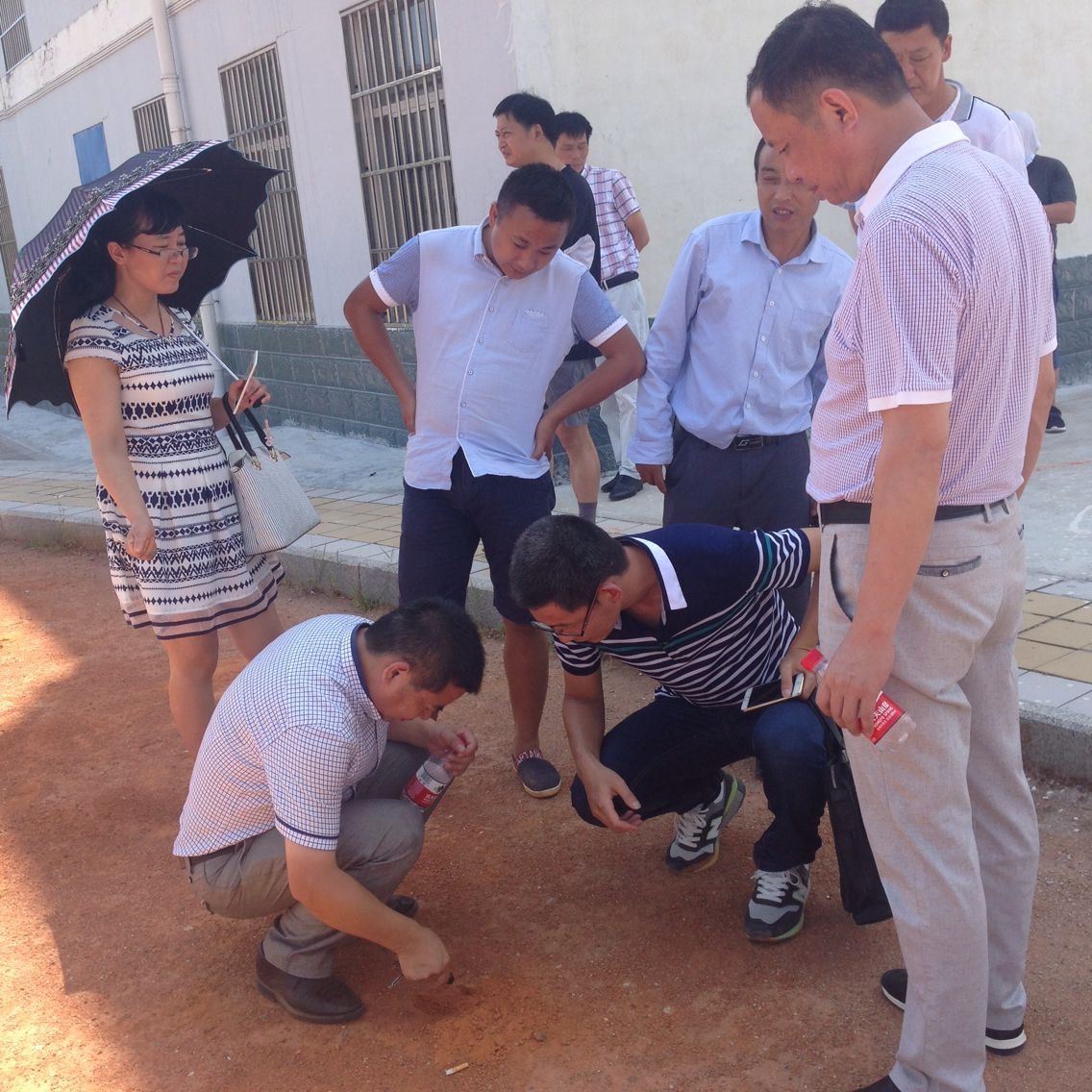 市教育局组织考察岳西县学校运动场红砖粉跑道情况
