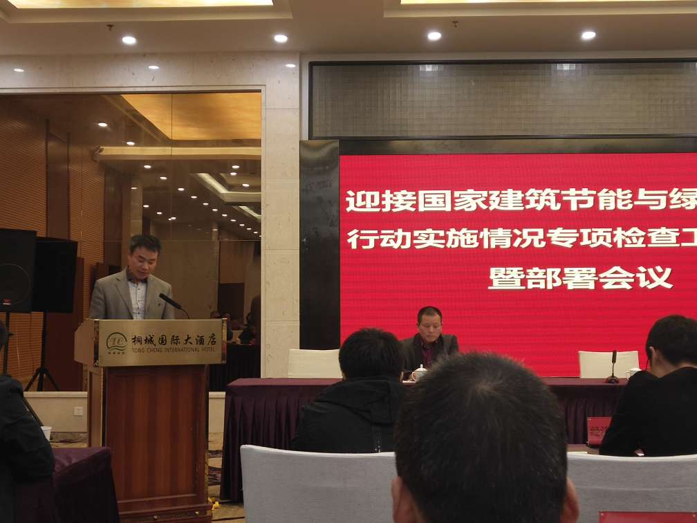 为进一步推进我市住房城乡建设领域生态文明建设,促进我市建筑节能与绿色建筑工作深入开展,10月13日,迎接国家建筑节能与绿色建筑行动实施情况专项检查工作动员暨部署会议在桐城国际大酒店召开,市委常委、副市长陈先锋出席会议,住建局党组书记、局长徐彬主持会议。公司汪海元总经理为首的班子成员、各项目总监参加会议。