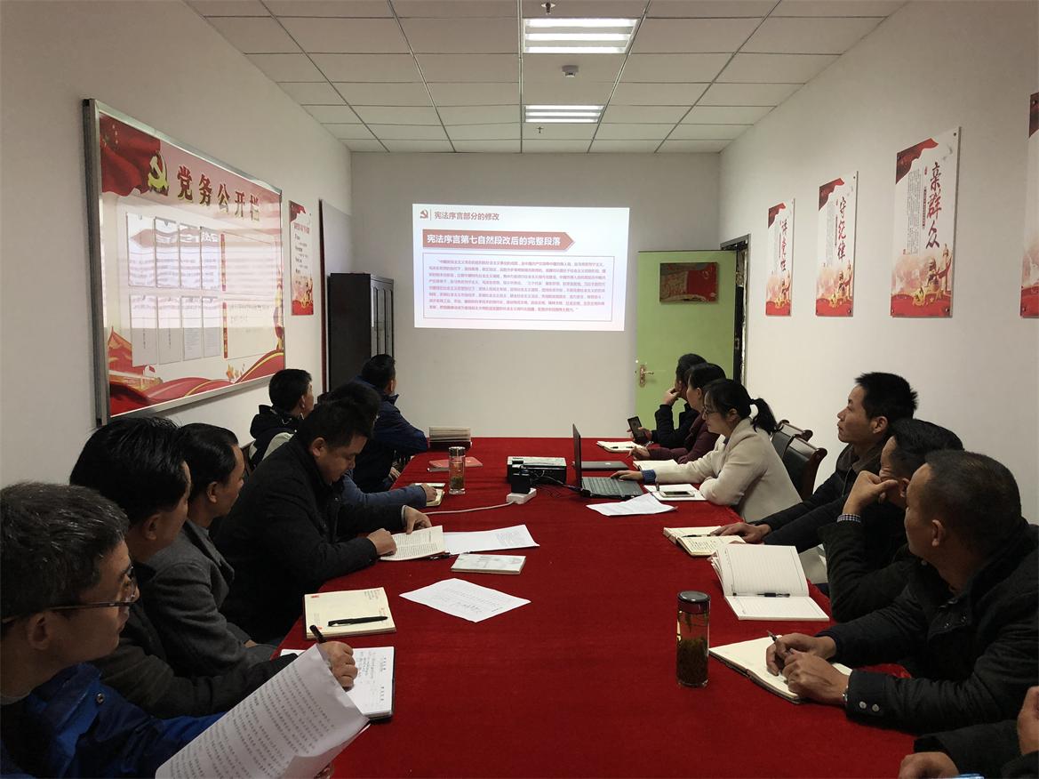 随后,支部书记带领大家详细学习了《宪法》的修改内容,充分认识到宪法是国家的根本法,是治国安邦的总章程,是党和人民意志的集中体现。宪法修改是国家政治生活中的一件大事,是以习近平同志为核心的党中央从新时代坚持和发展中国特色社会主义全局和战略高度作出的重大决策,是保证党和国家长治久安的重大制度安排。