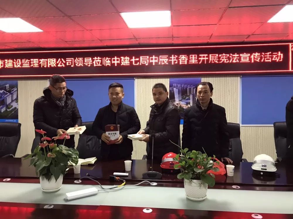 为深入贯彻学习宪法知识,加强工地施工人员的法治观念以及依法维权的意识和能力,12月10日,市监理公司开展“宪法宣传进工地”活动,党员及入党积极分子参加本次活动。