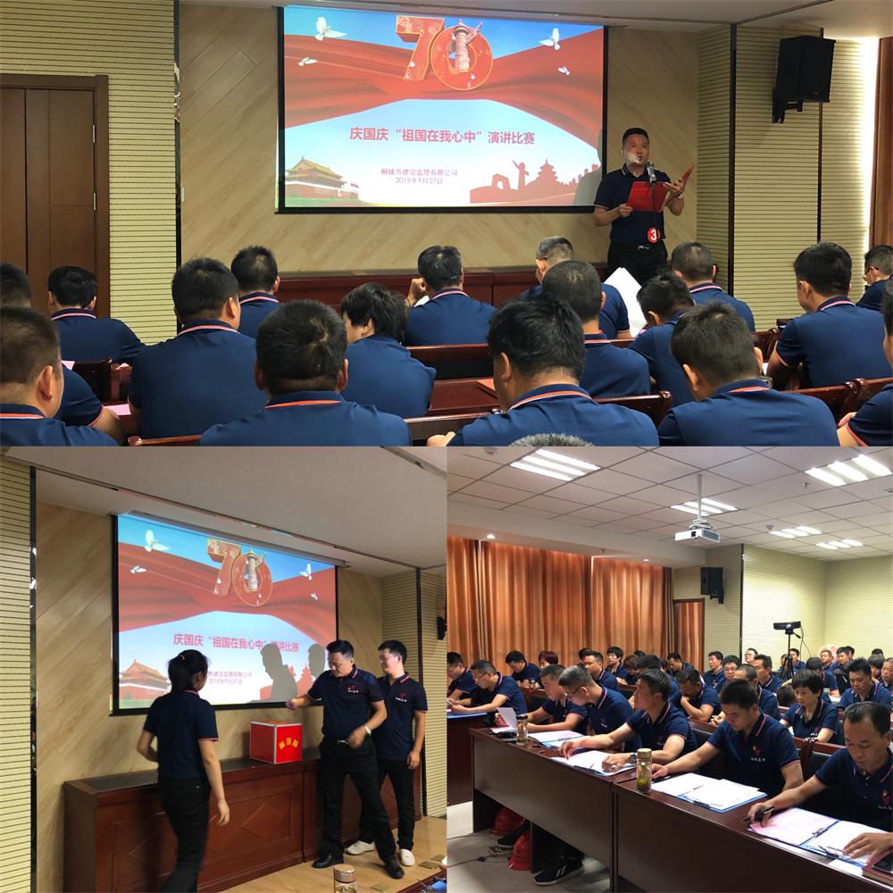 为加强爱国主义教育,弘扬社会主义核心价值观,培养公司员工的民族精神,爱国精神。9月27日下午,为迎接中华人民共和国成立70周年,市监理公司成功举办了庆国庆“祖国在我心中”主题演讲比赛。