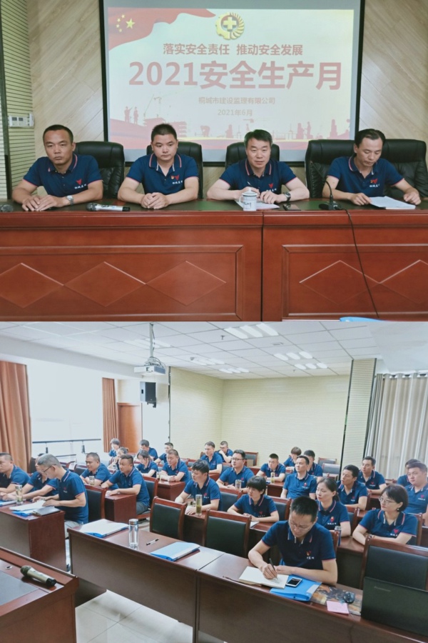 召开专题会议,统一思想、精心部署。会上公司总经理汪海元亲自部署,要求各监理部认真开展自查自纠工作,职能科室按照制定的安全月活动方案,落实安全责任,认真开展施工现场安全隐患大排查工作,一般隐患限期整改,重大隐患立即整改,确保施工现场安全可保可控。要加大宣传引导,营造安全月的浓厚氛围,多种形式开展活动,时刻让全体监理人员绷紧安全生产这根弦,筑牢安全防线,护航百年华诞。