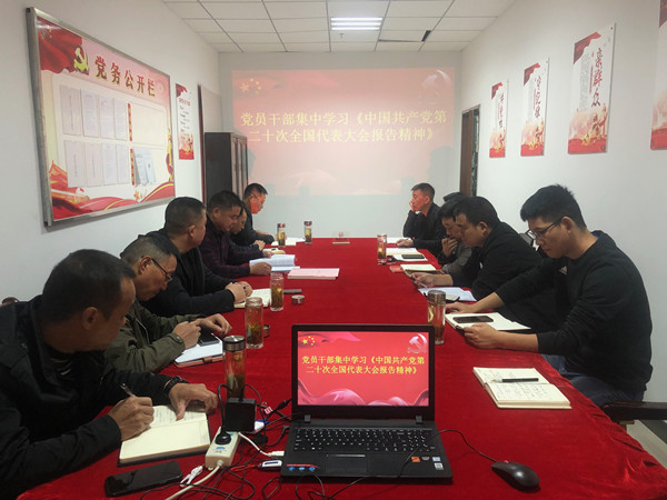 会上,支部书记传达了党的二十大专题学习计划并对专题学习进一步提出要求:一要充分认清深入学习和全面贯彻党的二十大精神是当前首要的政治任务;二要坚持原原本本学,反复深入学,创新方式学,不漏一人学,确保让党员把党的二十大精神深学悟透,走深走实;三要充分认识党的二十大的重大历史意义,切实把思想和行动统一到党的二十大精神上来,同时贯穿到各项工作中;四要增强学习自觉性、主动性,用党的二十大精神武装头脑,激发干事热情。