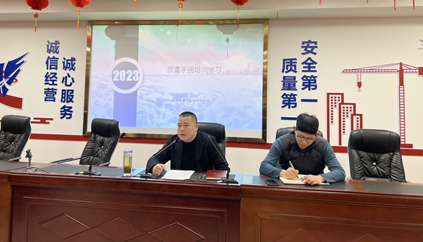 为了强化现场质量、安全监理工作,努力提高我公司现场监理队伍素质和监理工作水平,公司于2023年3月份出版了《质量安全作业指导手册》,现为了该指导手册真正服务于员工,公司于2023年3月12日,组织开展员工质量手册宣贯培训活动。