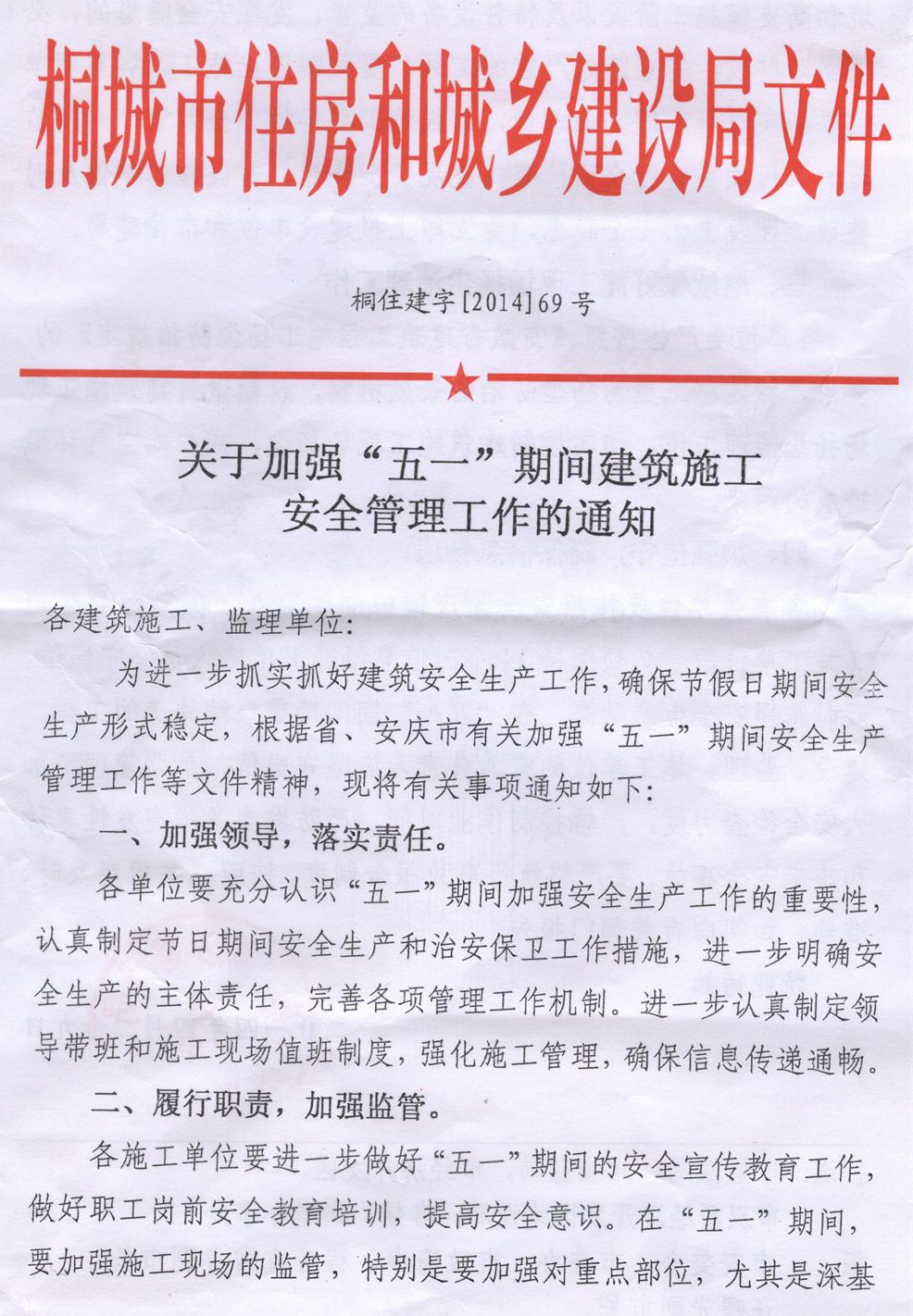 (局发)关于加强“五一”期间建筑施工安全管理工作的通知