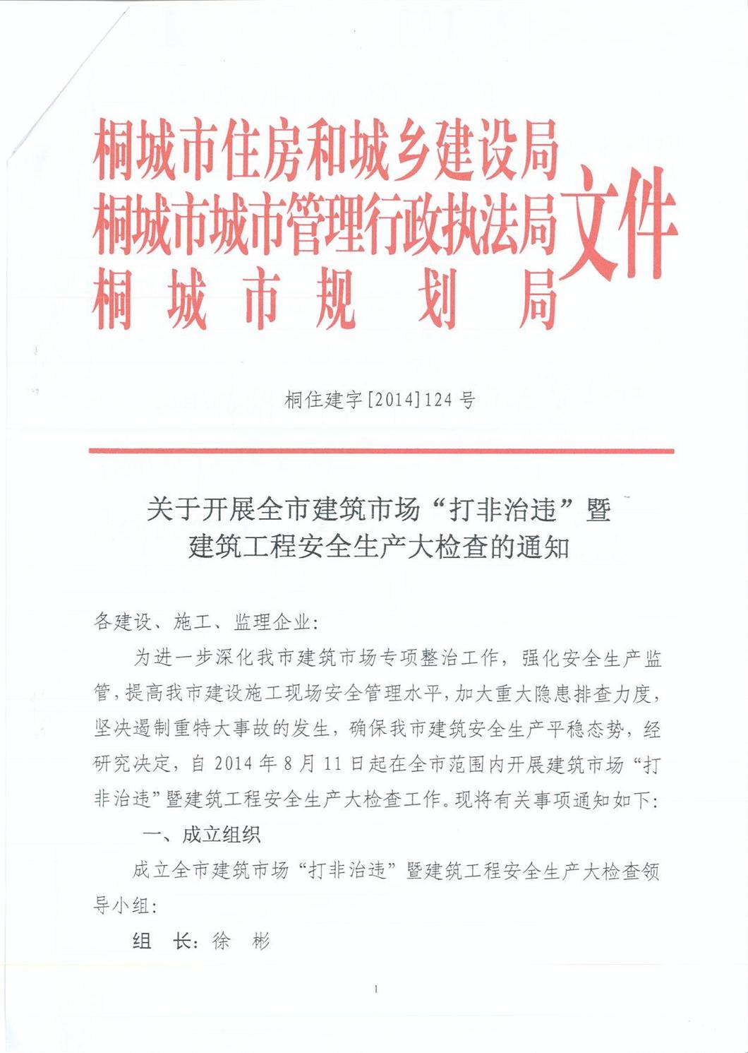 (局发)关于开展全市建筑市场“打非治违”暨建筑工程安全生产大检查的通知