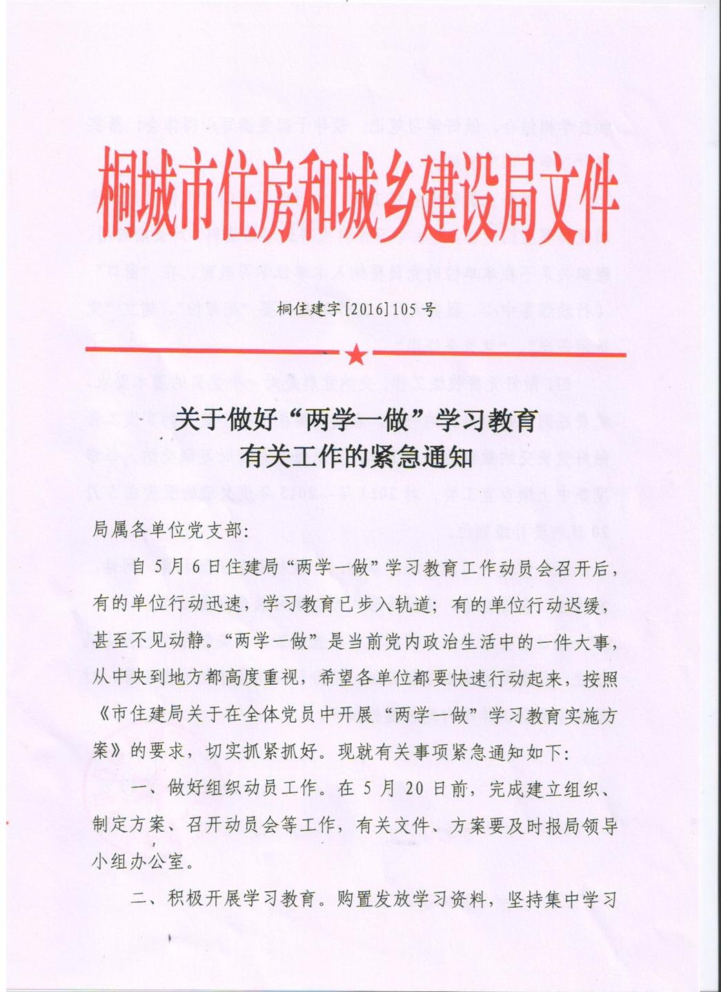 (住建局)关于做好“两学一做”学习教育有关工作的紧急通知