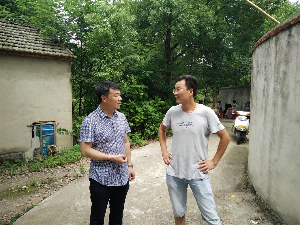 随后,一行人赶赴2018年安庆市级美丽乡村示范村畈庄中心村现场踏勘,并走访了贫困户,与其进行交流谈心,了解脱贫后的生产生活状况,恰逢贫困户家添丁之喜,也为其送上红包和满满的祝福。