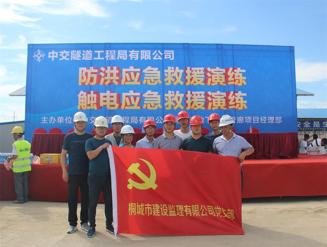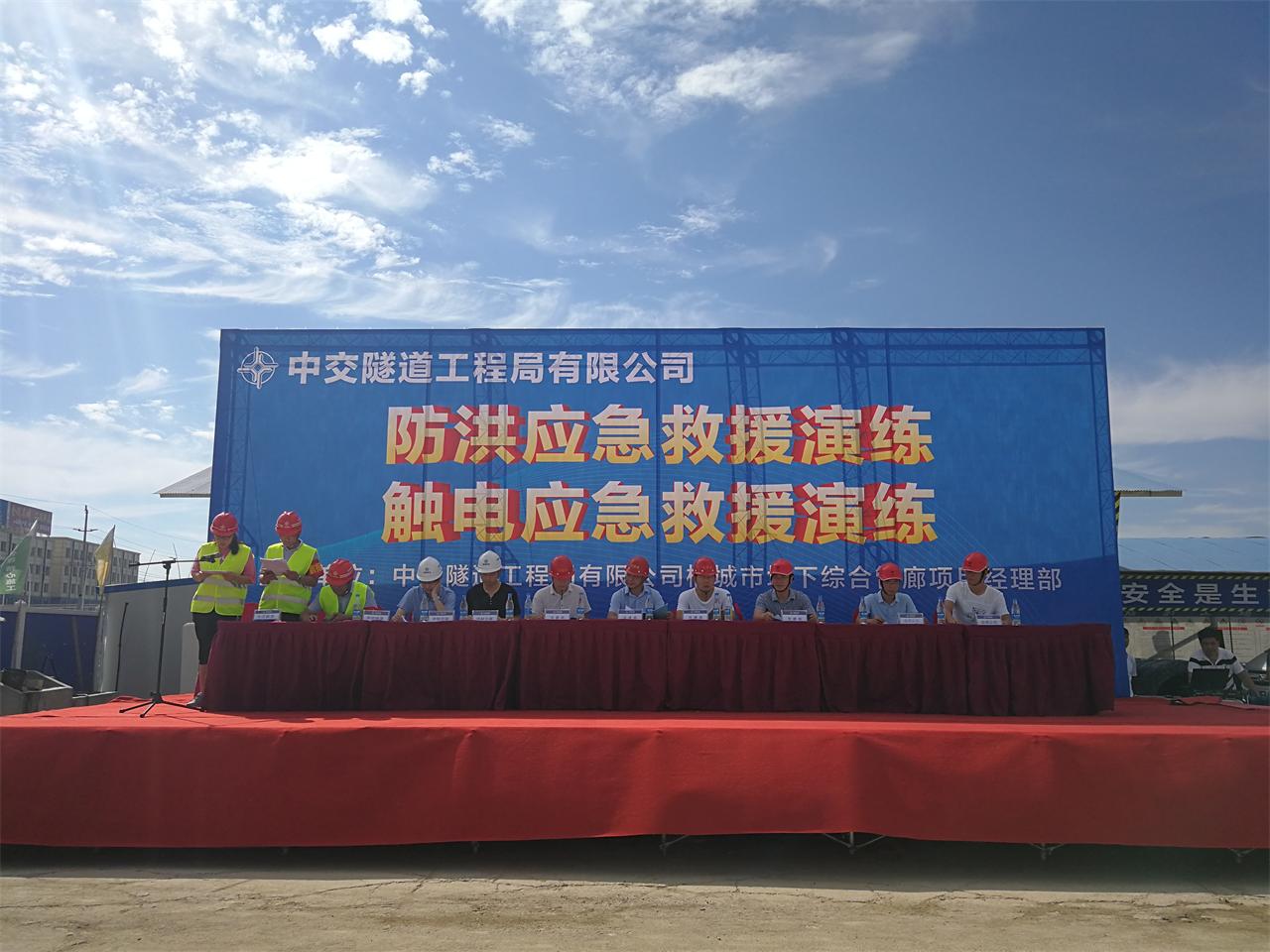 盛夏季节,日照强度高,高温天气持续,也是汛期安全生产事故的易发期,为了检验施工现场作业人员汛期安全突发事件的应急救援处置能力,2018年7月17日上午,中交隧道工程局在我市盛唐南路地下综合管廊工程的施工现场组织开展防洪应急救援演练及触电应急救援演练活动,市住建局党组书记、局长徐彬、副局长胡文清、建工处主任杨友龙及公司总经理汪海元等莅临现场指导,公司各片区负责人及质安部、监理部人员应邀参加现场演练。