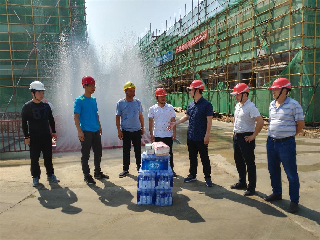 炎炎夏日,高温酷暑。近日,我市的气温持续走高,给一线的工地施工、管理人员带来严峻的高温考验,特别是露天施工作业的工人,体能消耗很大,为确保高温暑期项目一线员工作业和人身安全,7月17日和18日上午我公司在总经理汪海元、党支部书记高旭东等班子成员的带领下,购买了矿泉水、凉茶、毛巾以及一些防中暑的药品,分别来到了桐城市综合管廊项目、中辰.书香里和都市华庭三期等项目进行“夏日送清凉”慰问活动。每到一处,我们都不忘叮嘱项目部管理人员,要合理调整作息时间,确保施工人员身体健康和施工安全。这些防暑降温用品虽不贵重,但真切表达了我公司对一线人员的关怀,希望给这炎炎夏日带来一丝清凉。