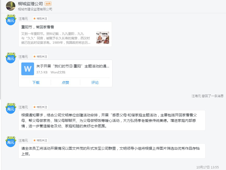 汪海元总经理在群里发起“感恩父母·和谐家庭主题活动